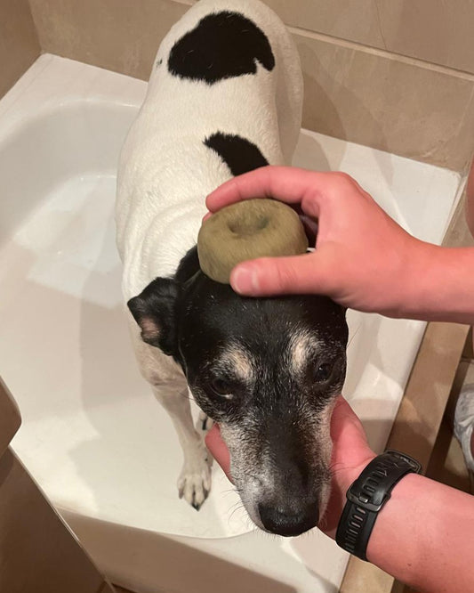 3- Rub the solid shampoo between your hands to create a rich lather before applying it to your dog's coat. This will make it easier to spread and work through the fur. You can also foam with your hands and rub the dog with its own solid shampoo if you prefer.