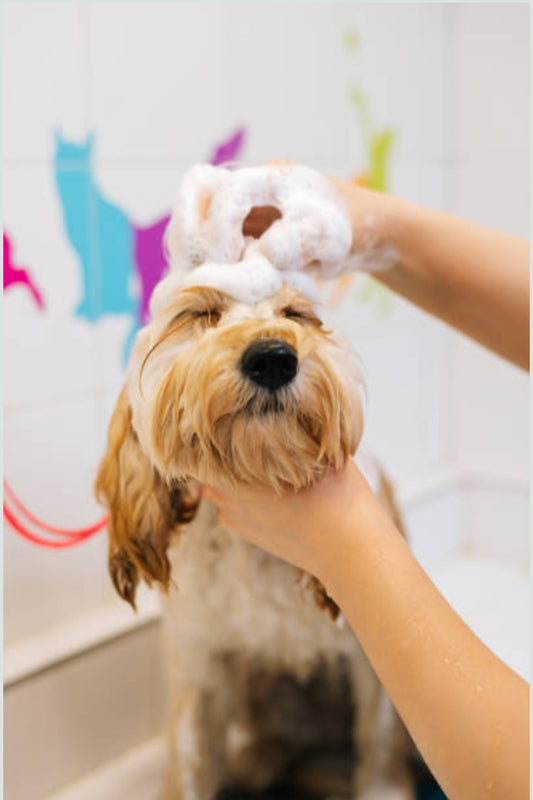 4- When applying the shampoo, use gentle massaging movements to place it on your dog's coat. Not only does this help clean the coat, but it also provides a relaxing and enjoyable experience for your dog.